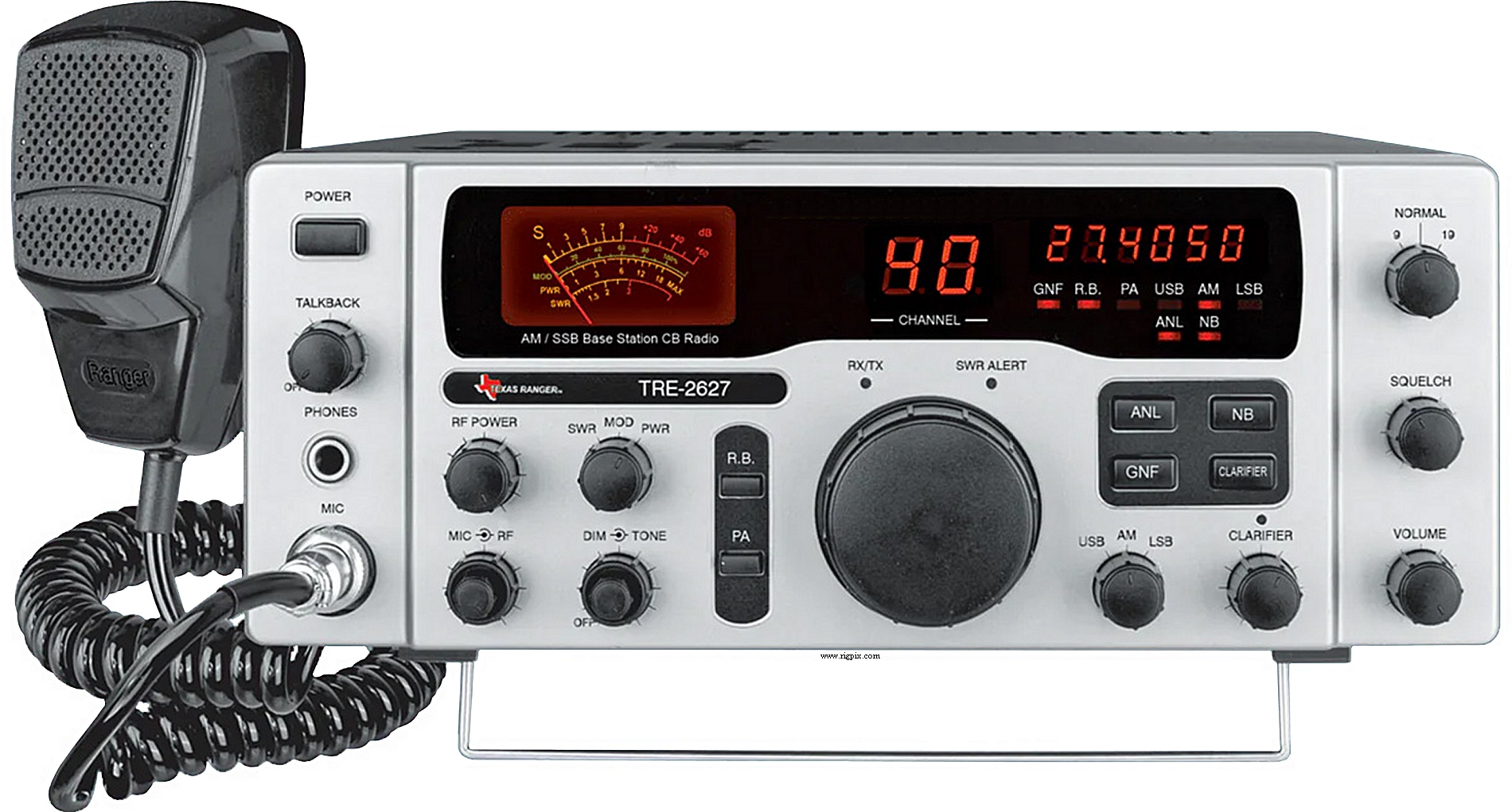 PA. Roger beep. ANL/NB. Dimmer. S/RF/SWR/Modulation meter.
