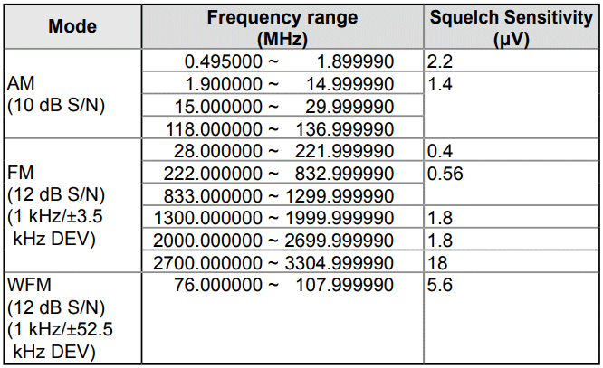 1.9-148 MHz: 0.25 uV