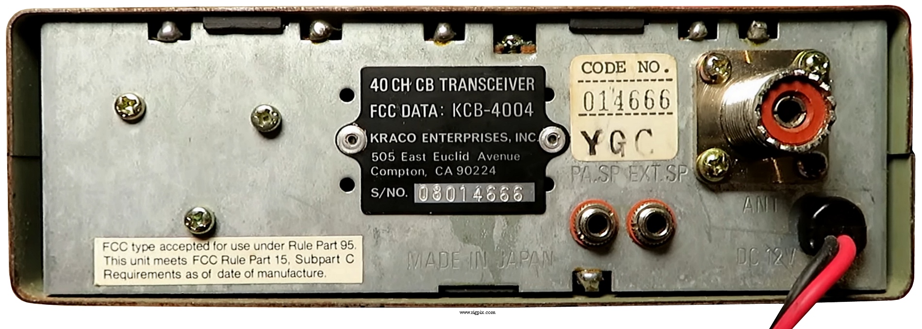 | Power supply: | 13.8 VDC (Fixed power cord) |