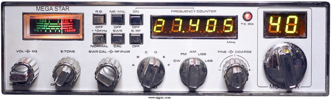 | Other features: | ANL/NB. Roger beep. +10 KHz switch. Dual echo. SWR meter. |
