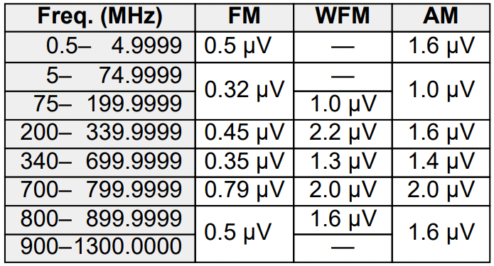 800-1300 MHz: 0.5 uV