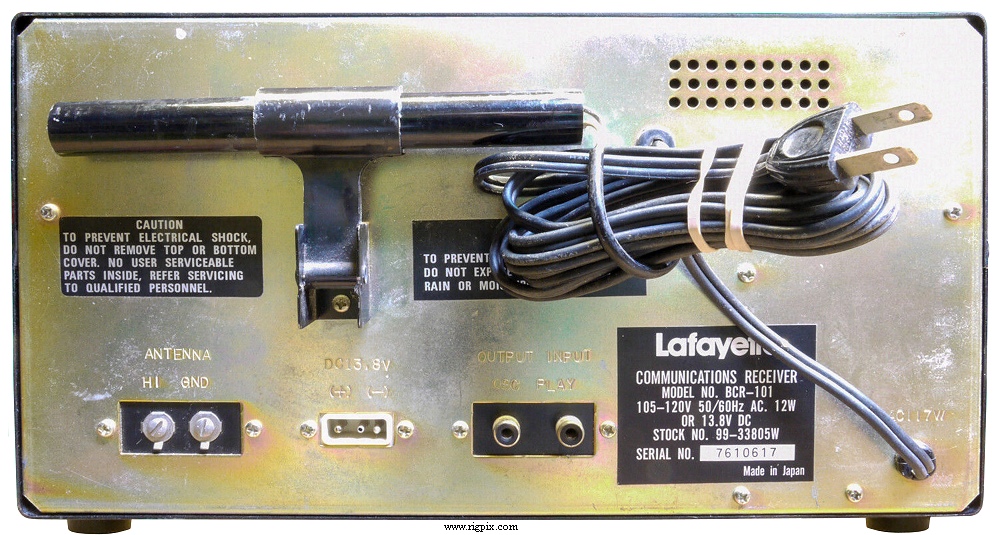| Power supply: | Mains: 105-120 VAC or 13.8 VDC (3-pin connector) |